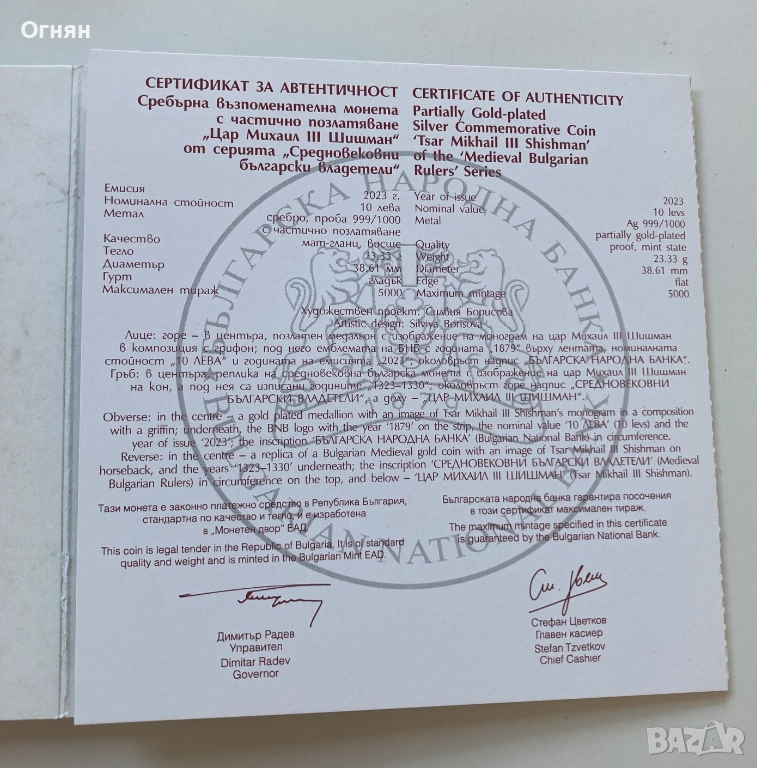 10 лева 2023 година "Цар Михаил III Шишман" → Обява 49148725