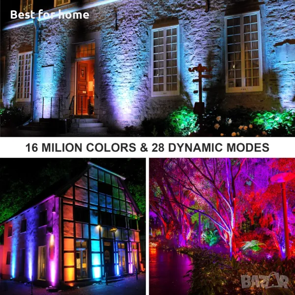 OUSIDE RGB LED прожектори, 100W външни прожектори с промяна на цвета, IP66 водоустойчиво управление с Bluetooth приложение 16 милиона цвята с функция за синхронизиране за градина, тераса, външно осветление