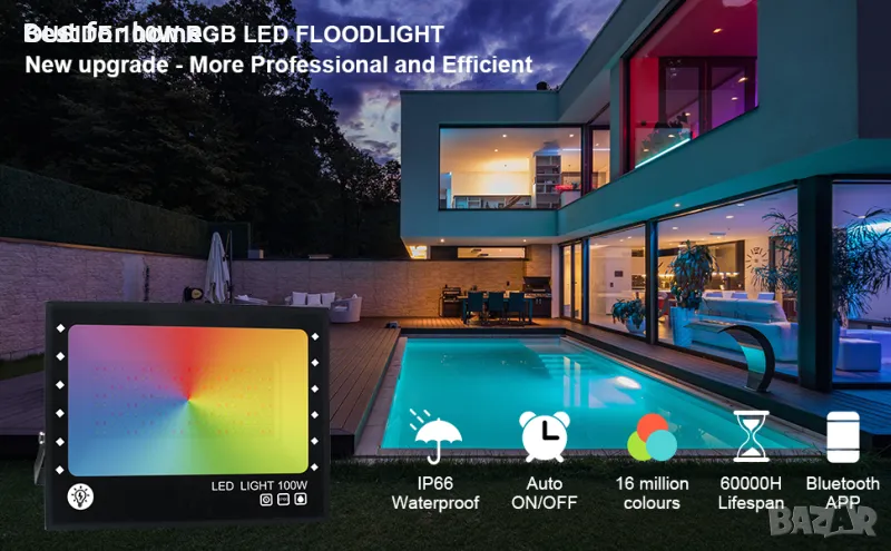 RGB LED смарт прожектори OUSIDE 100w- 2бр.