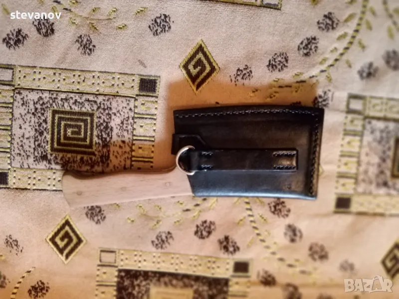 конпактен малък размер оргинален не раждаима стомана инох масивна и здрава със оргинален калъф от естествена кожа за ползване или колекция като нов режи добре има натписи по него печат