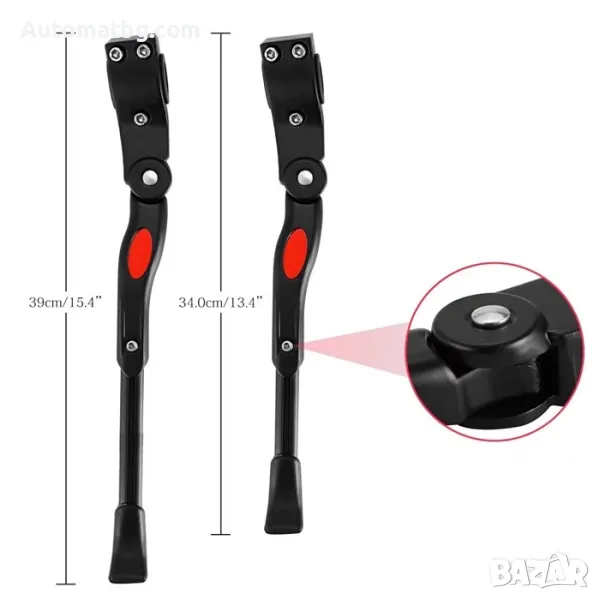 Степенката за велосипед е изработена от алуминий и може да се регулира между 34 и 39см. Тя е сгъваема и има неплъзгаща се основа. Издържа на натоварване до 10 кг и е много лесна за сглобяване.