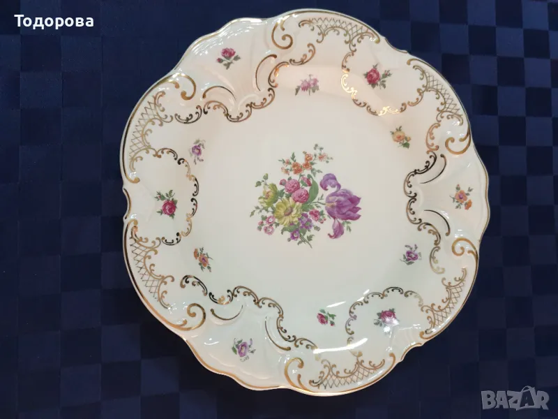 Старинно бароково плато,фруктиера - Bavaria Mitterteich от 20-те години на миналия век.Неупотребявано,с богата позлата и флорални мотиви.Дияаметър - 31 см. Височина - 5 см.
