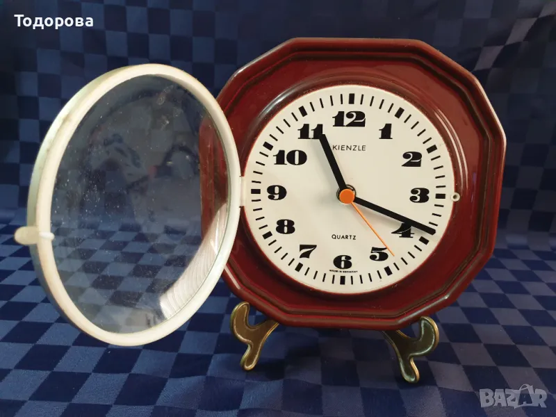 Порцеланов кухненски часовник Kienzle с изпъкнало,защитно стъкло. Работещ точно.Размери - 21 х 21 см.