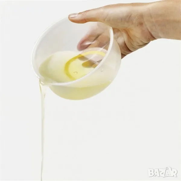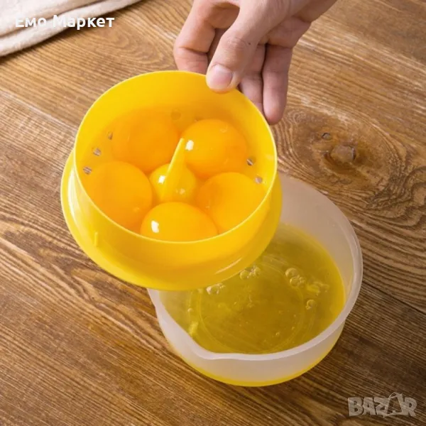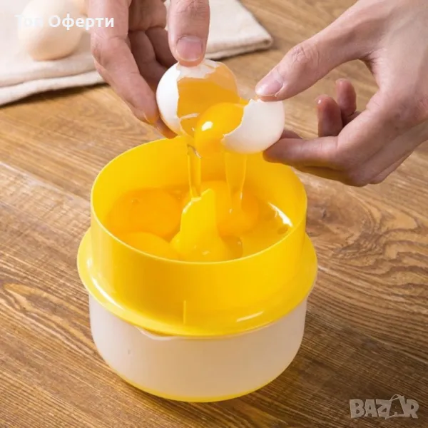 Лесен за използване уред за бързо и чисто разделяне на жълтъци от белтъци.