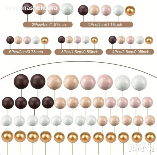 108 броя топчета топки на тел стиропор за декорация на торта → Обява 49152099