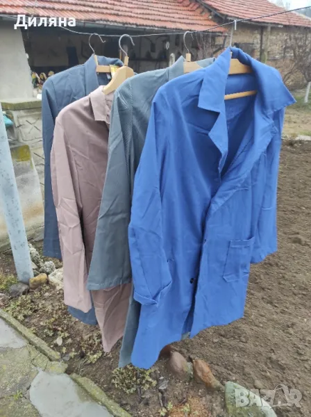 Трите сиви продадени,работни манти от соца ,нови мъжки и дамските с разм гр 100см ,дълж 105см по 12 лв бр
