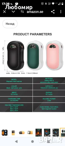 WATMHHJQ Електрически нагревател за ръце [Комплект от 2] Разделен магнитен 5000mAh * 2, преносим джобен нагревател, акумулаторен магнитен нагревател за ръце, дълготраен за зимни спортове.Новата технология за магнитно засмукване разделя 1 до 2 нагревателя за ръце за секунди, разпределяйки топлината със семейството и приятелите по всяко време.Този нагревател за ръце е оборудван с батерия с голям капацитет от 10 000 mAh (5 000 mAh * 2), която може да генерира повече от 10 часа топлина и е топла за дълго време. Той е много подходящ за зимни спортове на открито като бягане, къмпинг, ски, туризъм, планинско катерене и.Уникален извит дизайн, ергономичен дизайн, красив и лесен за хващане и не е лесен за изплъзване. Черупката е гладка и мека и се усеща като кожа от мляко. Нагревателят за ръце от една част е малък и лек и тежи само 137 грама, така че няма да се уморява, когато го държите дълго време и може лесно да се съхранява в чанти и раници, когато пътувате. Всеки нагревател за ръце се предлага с примка за шнур за закачане на врата ви или на раница.Този нагревател за ръце има 3 настройки на температурата: 60°C/50°C/40°C) и има цифров дисплей за температура, който е готов веднага щом го видите, температура по всяко време според вашите собствени предпочитания. Всеки нагревател за ръце е снабден с работен дисплей, който ви позволява да преглеждате работния статус по всяко време и да зареждате навреме.