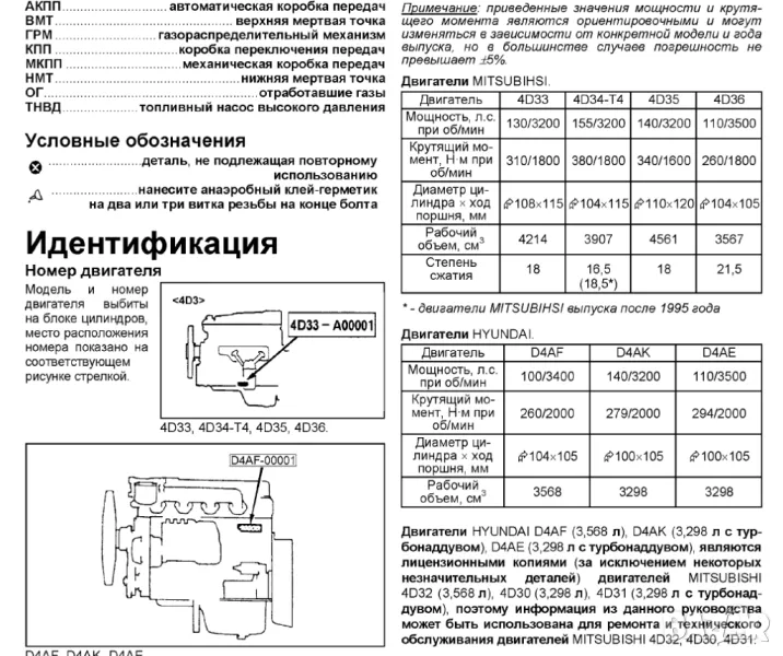 1.Двигатели MITSUBISHI 4D33, 4D34-T4, 4D35, 4D36 • HYUNDAI D4AF, D4AK, D4AE. -104 стр. ISBN 5-88850-194-8