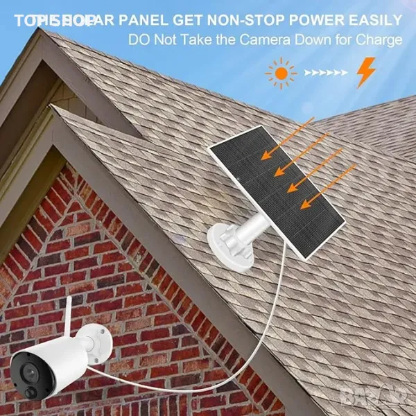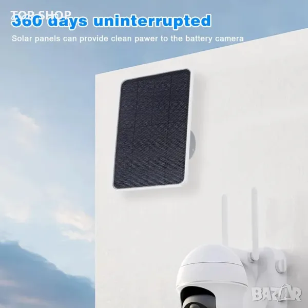 365 дни слънчево захранване: Този слънчев панел може непрекъснато да абсорбира слънчева енергия и да поддържа захранването на камерата за наблюдение. Няма нужда често да деинсталирате камерата и да я зареждате ръчно отново.