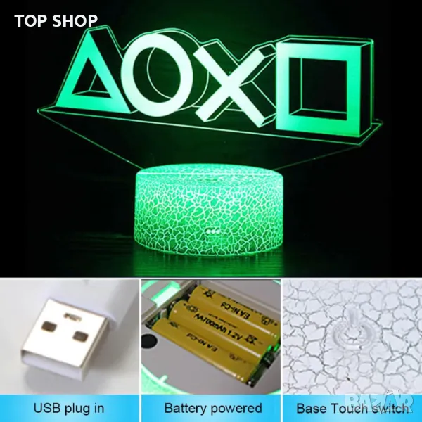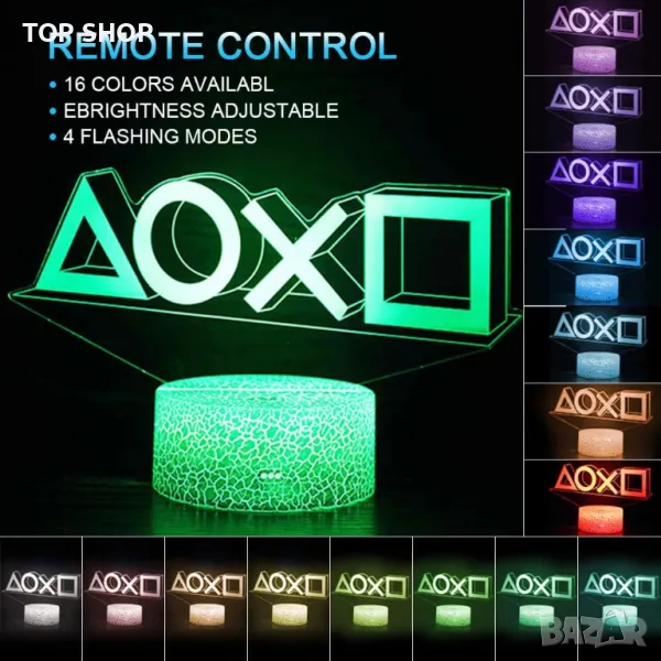 3D Play station Нощна лампа с 16 цвята Функция USB зареждане 4 мигащи режима 3D лампа за деца Момчета Мъже Геймър Игра Тийнейджърски фенове