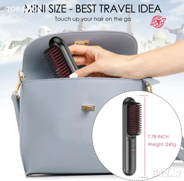 Висок клас четка! USB акумулаторна преносима горещ гребен за изправяне за бързо нагряване и размер при пътуване - Гребен за изправяне за дома/пътуване/на открито