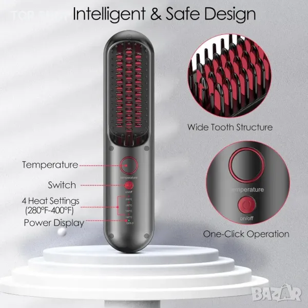 Безопасна употреба -- Нашата безжична преса за коса има топлоустойчиви зъби на гребен и гумен материал на дръжката, който може ефективно да предотврати изгаряния на кожата и да гарантира безопасна употреба.