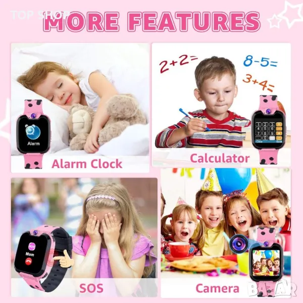 Този детски часовник за игри, оборудван с 16 игри, които могат да се използват за развитие на детския мозък, трениране на математическото мислене и координацията око-ръка и стимулиране на богатата креативност и въображение на децата. Не поддържайте изтегляне на други игри.