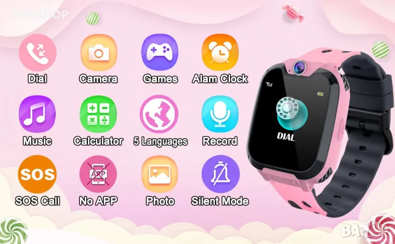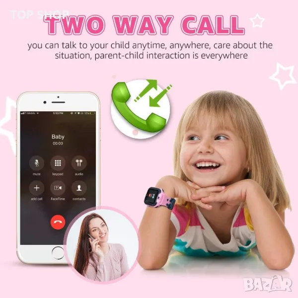 PTHTECHUS Смарт часовник,музикален плейър,16 игри,калкулатор,двупосочно обаждане,аларма,камера