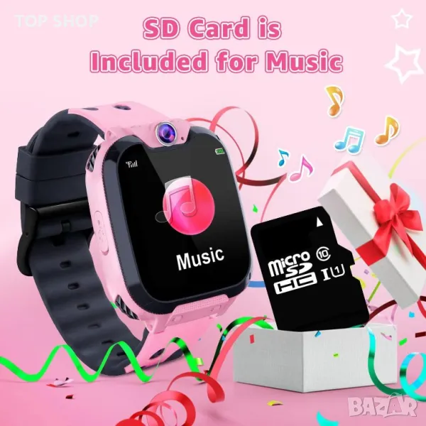 PTHTECHUS Детски смарт часовник за момчета Момичета Телефон игра Смарт часовник за деца [1GB Micro SD включена]