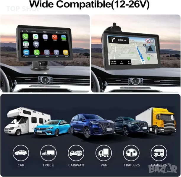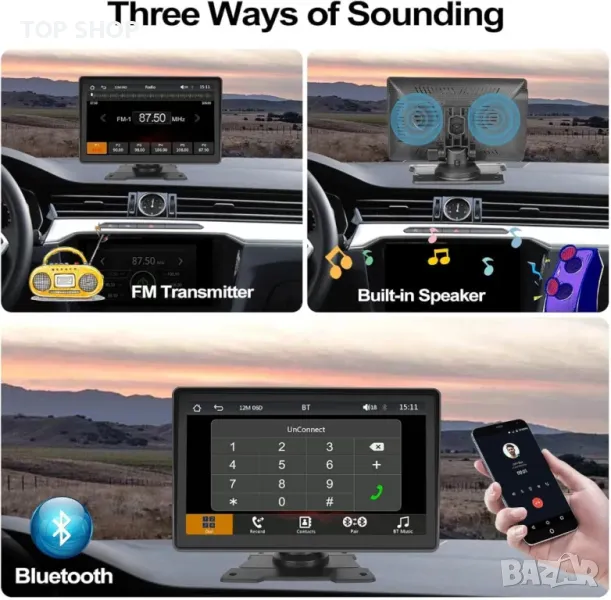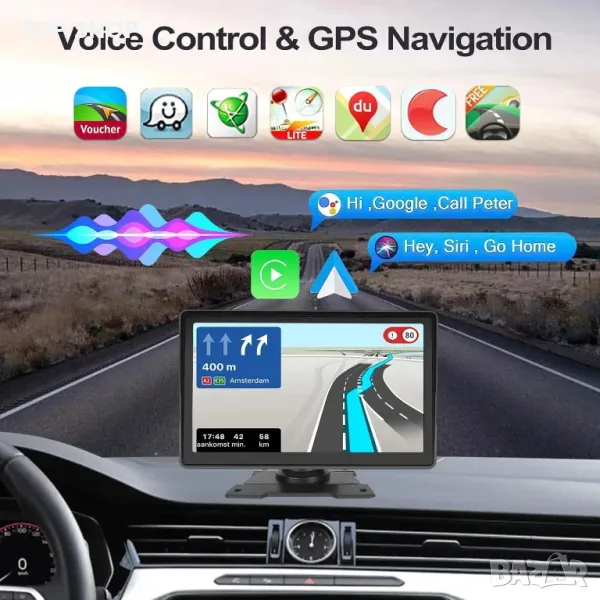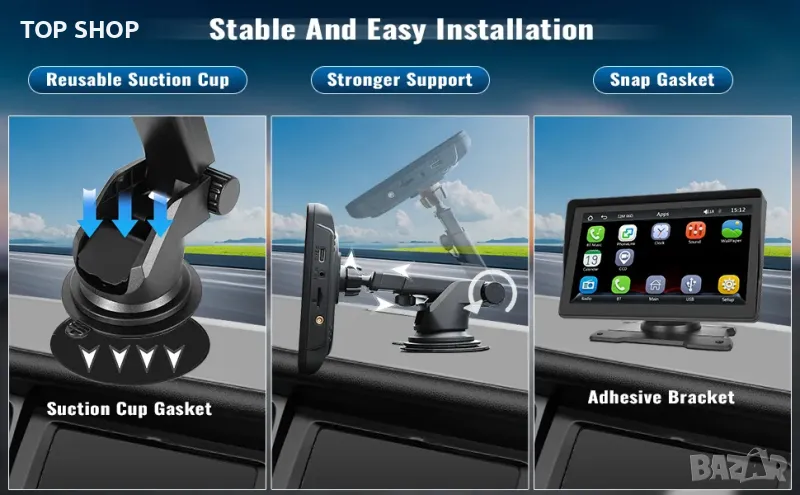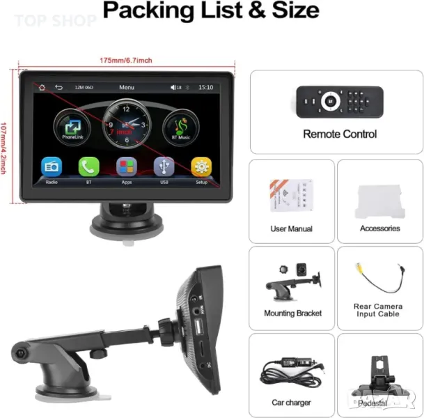 Преносима стерео уредба за кола с Apple Carplay и Android Auto