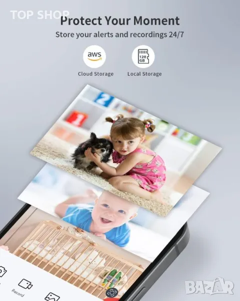 Ние използваме облачни услуги на AWS, за да предаваме и съхраняваме вашите ценни видео данни онлайн, независимо дали бебето ви се смее или плаче, или щастливите моменти на вашето семейство. Криптираният канал за предаване се предава на вас. Локално съхранение, с високо ниво на поверителност, се доставя само на вас.