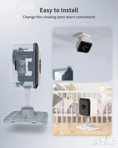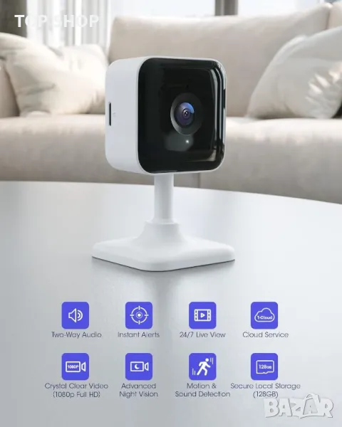 1080P HD WiFi вътрешна камера Включва нощно виждане, разпознаване на движение и звук, 2-посочно аудио, съхранение в облак и SD карта, работа с Alexa и Google Assistant, 2 пакета
