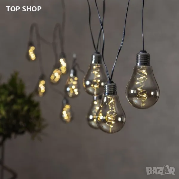 Ясна: атмосферна, топла бяла светлина с 10 електрически крушки, изработени от здрава, прозрачна пластмаса;
