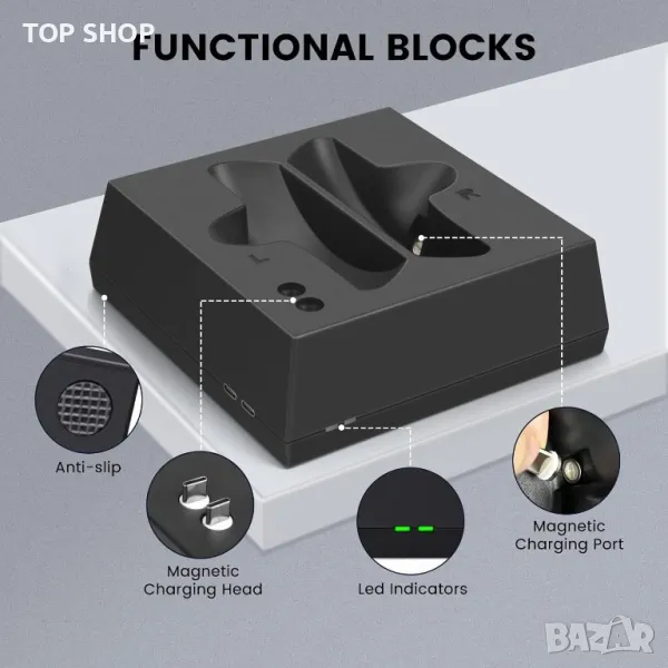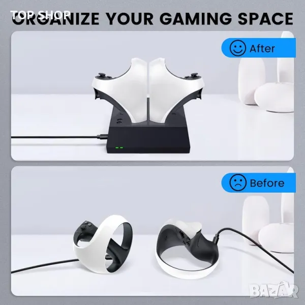 【Дизайн против приплъзване】 - Това зарядно устройство за контролер PSVR 2 се предлага с четири силиконови подложки против приплъзване на дъното, които ефективно предотвратяват плъзгане или движение по време на употреба, което ви позволява да работите с него само с една ръка.