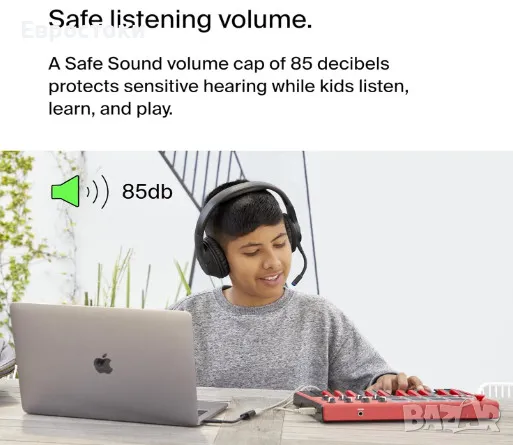 • Безопасен звук за деца: 85 dB ограничител на звука за защита на слуха