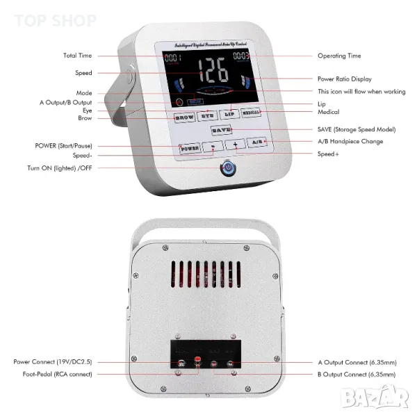 тази машина за перманентен грим CTD003 има компютърен LCD, който автоматично показва мощност, време на работа и данни за превключване. С ръчен и спирачен педал превключвател прави работата по-удобна за управление.