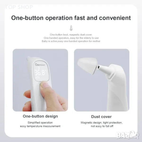 МНОГОРЕЖИМЕН ТЕРМОМЕТЪР】Термометър за уши и чело на Berrcom, подходящ за бебета, деца и възрастни. ℃ и ℉ се превключват лесно, разполага с функция за автоматично изключване (30 секунди) за пестене на енергия