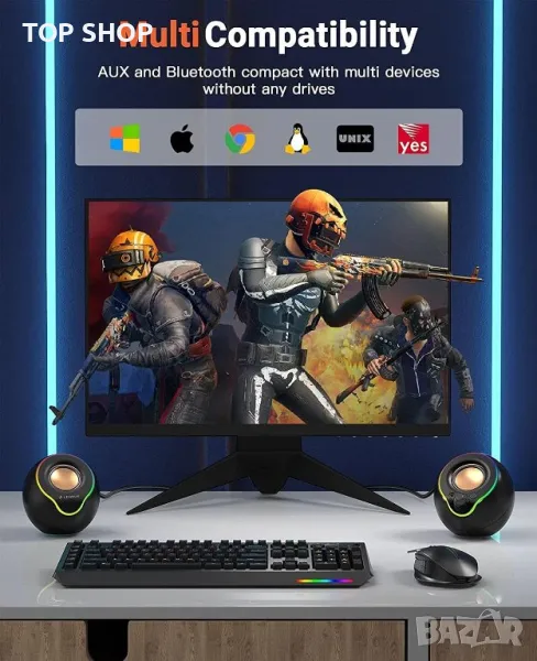 Paly & Play for Multi Devices - Няма нужда от никакви устройства! Компютърните високоговорители отговарят на всички видове настолни компютри, лаптопи iMac и Windows (Vista / 7 / 8 / 10), Mac OS, Chrome OS, Linux, UNIX и др.