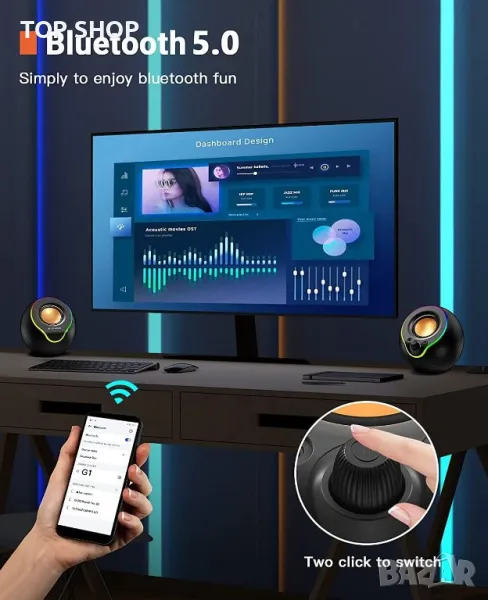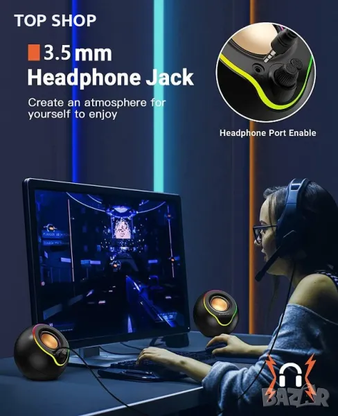 360° Мощен бас и без шум - Компютърни високоговорители с вградена 10 W ясна мощност, технология без шум, внасят звукова атмосфера във вашето видео, аудио и игри.