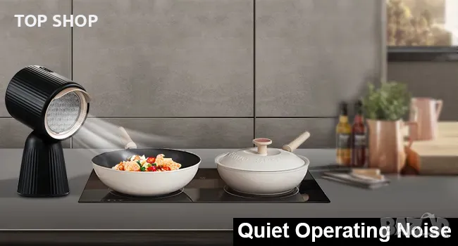 Завладяващ външен вид: Елегантен дизайн на черни райета, той внася нотка на съвременна изтънченост във всяко кулинарно пространство. Кухненският вентилатор е изработен от ABS материал, изработен с матово покритие, функцията против пръстови отпечатъци гарантира, че зацапванията и петната са сведени до минимум. Стабилност благодарение на конусовидна основа с неплъзгаща се гума.