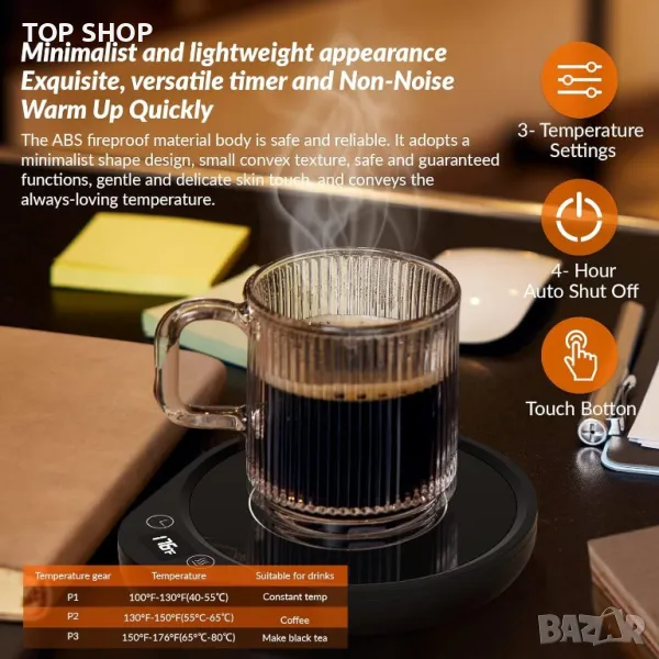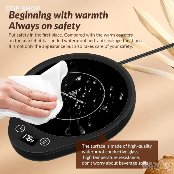 【Безопасен и издръжлив】Нагревателят за напитки с високотехнологични материали прави топлоустойчивото кафе устойчиво на топлина и пожар. Дизайнът, устойчив на разливане, предотвратява повреда и прави почистването лесно. Моля, дръжте го далеч от деца, за да предотвратите изгаряния.