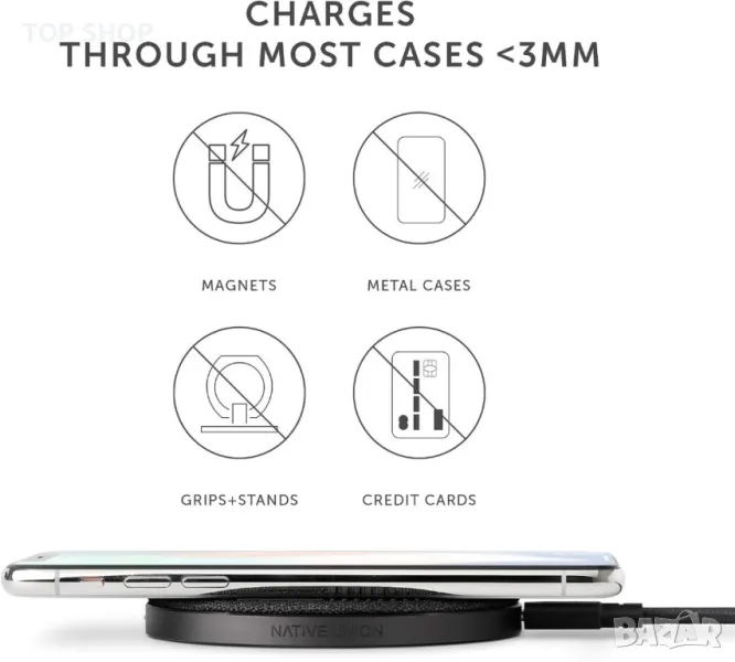 Native Union Drop - Високоскоростно безжично зарядно [Qi Certified] 10 W неплъзгащо се за iPhone