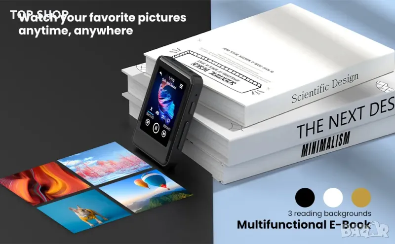 【2,4-инчов цял екран и електронна книга】Това е 2,4-инчов mp3 плейър на цял екран. Има 320*240 напълно монтиран капацитивен екран. Това позволява мултитъч. Осигурете ви по-зашеметяващо визуално изживяване и потребителско изживяване. Този mp3 плейър на цял екран има функция за електронна книга. Пълният екран и мултитъч на MP3 плейъра ви позволяват бързо да се потопите в прекрасното забавление от четенето.