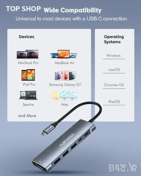 USB C хъб, многопортов адаптер 9 в 1 хъб със 100W мощност