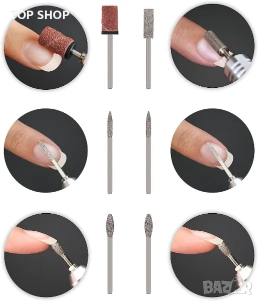 Комплект диамантени резачки от 6 части + 30 шлайфащи втулки • Електрическа пила за нокти • Перфектни нокти като в студио за нокти 100% Направи си сам за дома
