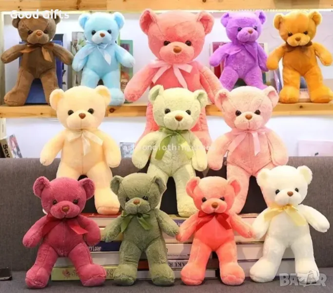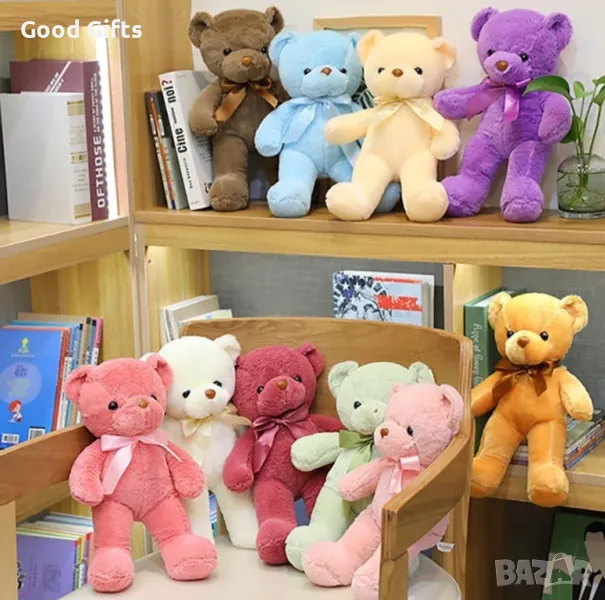 Плюшено Мече с панделка, 35см Розово, Кафяво, Лилаво и др. → Обява 49157974