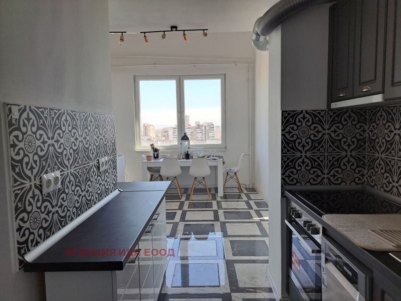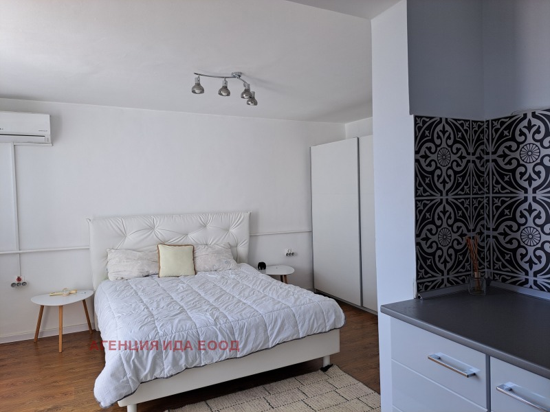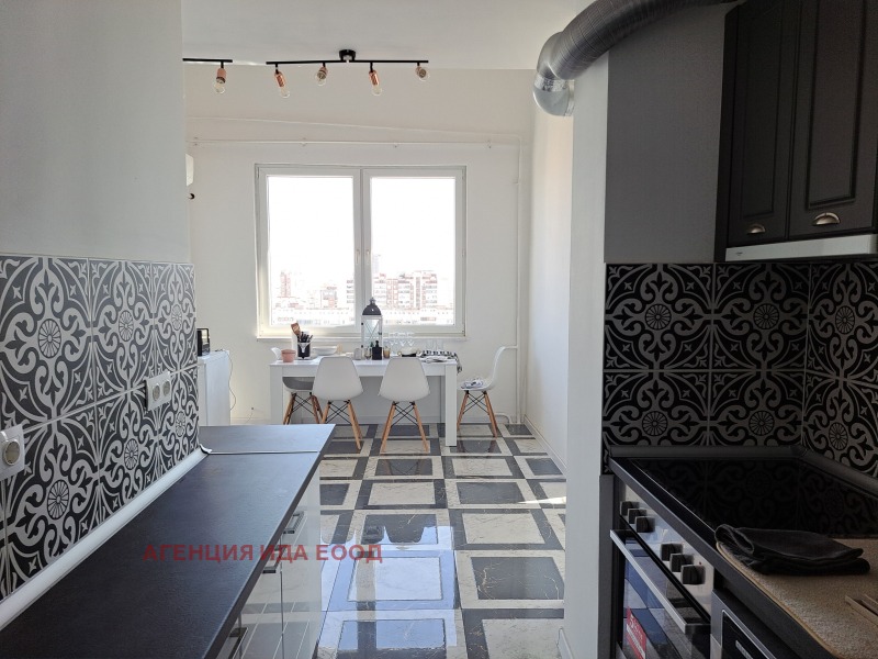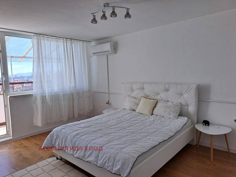 Шикозен, изключително светъл и просторен апартамент на две нива. Оригинално, нестандартно, разчупено пространство с различни височини на таваните. Подходящо както за живеене така и за всякакъв вид творческа дейност. След основен луксозен ремонт, много слънчев, в близост до МОЛ София на Ал.Стамболийски, на минути пешеходно разстояние до метростанция. Югоизточно изложение. На първи етаж: входно антре, отворено пространство с дневна,трапезария, кухн.част с нови електроуреди , баня и тоалетна, мокро помещение. Втори етаж: спалня с тераса, с красива панорамна гледка, баня и тоалетна. Пред банята има малко боксче с умивалник и шкафове. PVC дограма, стени - латекс, на пода е поставен нов ламиниран паркет. И на двете нива луксозни санитарни помещения. ТЕЦ. Има и климатици. Обзаведен.