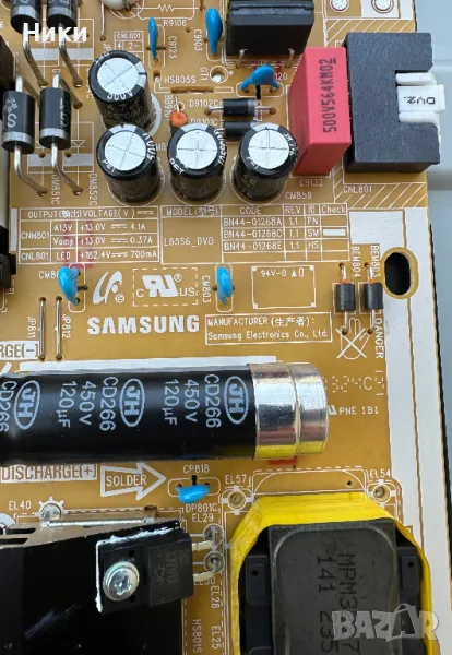 Power Board Power Board L65S6_DVD BN44-01268 от чисто нов телевизор SAMSUNG UE60DU7100K със счупен дисплей от транспорта. Платката е работеща и е нова модела на дисплея е CY-BD060HGSV1H. Изпращам по ЕКОНТ с опция тест и преглед!!! С оглед и проба на това, че модулите нямат гаранция, след прегледа, теста и заплащането не приемам възражения и ракламации, щото предварително всички платки и модули са тествани и в изправно състояние се изпращат!!!