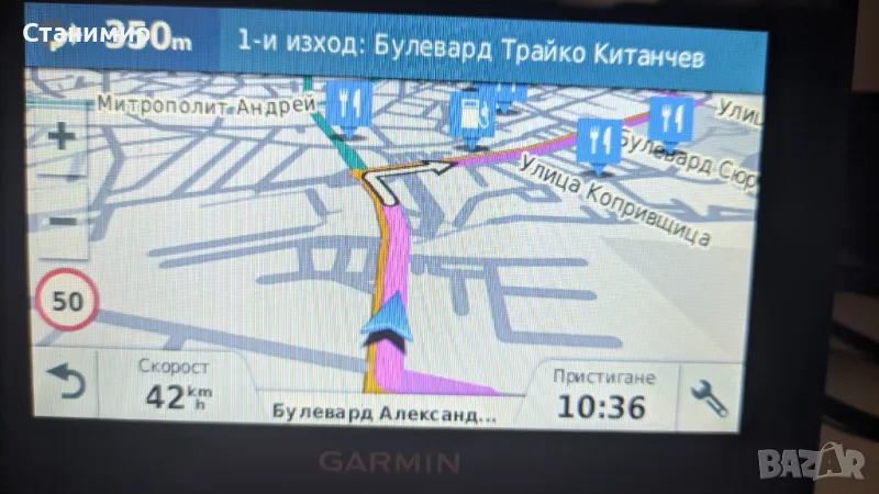 Предлагам навигация от висок клас Garmin DriveSmart™ 50LMT EU. Навигацията е от серията DriveSmart™, която по висок клас от най-разпространената Nuvi. Навигацията е в отлично състояние. Предлага се със зарядно за кола и стойка за кола. Каква е разликата от други навигации от по-нисък клас? Дисплеят е много по-добър, навигацията е много бърза. Освен това има какви ли не екстри като блутуд, благодарение на който може да говорите по телефона докато шофирате без да си раздвоявате вниманието и без да рискувате глоби.Освен това има гласово управление и можете да управлявате навигацията само с гласа си. Има опция да се свърже с телефона и чрез апликацията на Гармин Smartphone Link която можете да изтеглите на вашият телефон безплатно от google play.Чрез него ще може да получавате сведения в реално време като метеорологични условията и трафик.