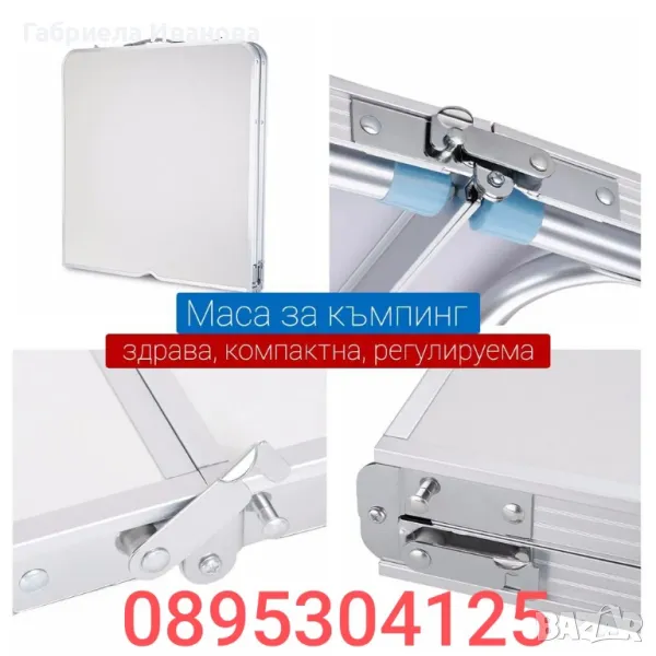 Материал: Алуминиева конструкция, стоманени панти, МДФ плот