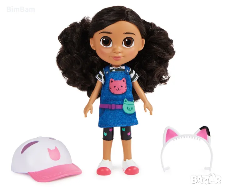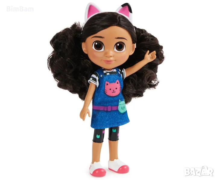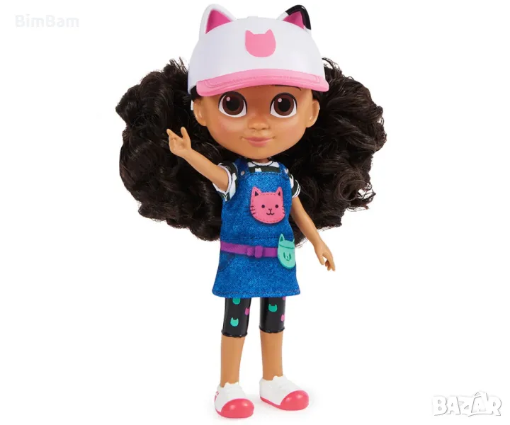 Gabby Girl носи класическото си облекло от шоуто, включително маратонки, дънков гащеризон, платнена горна блуза, характерната й лента за глава с котешки уши и супер сладка бейзболна шапка! Както нейната шапка, така и лентата за глава с котешки уши могат да се свалят и тя дори има мека и къдрава коса, която можете да разресвате, връзвате и оформяте!