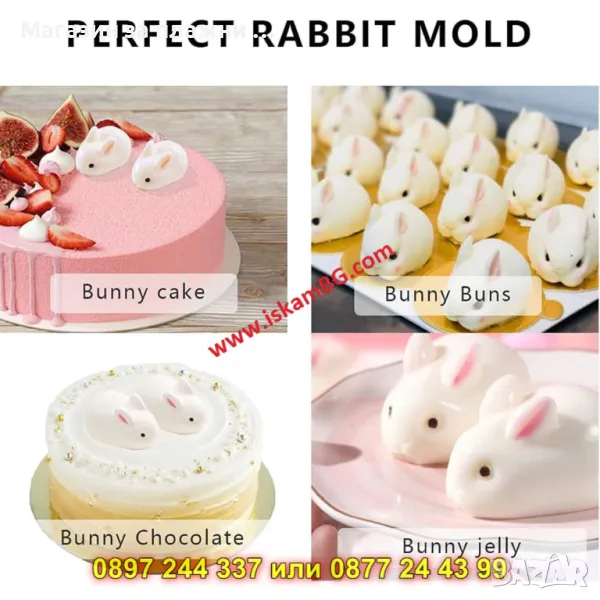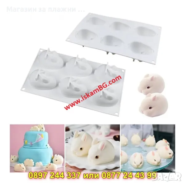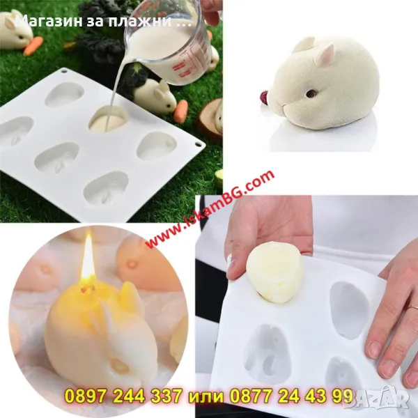 1 брой силиконов молд с 6 гнезда "зайчета"