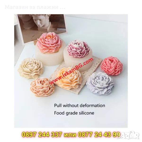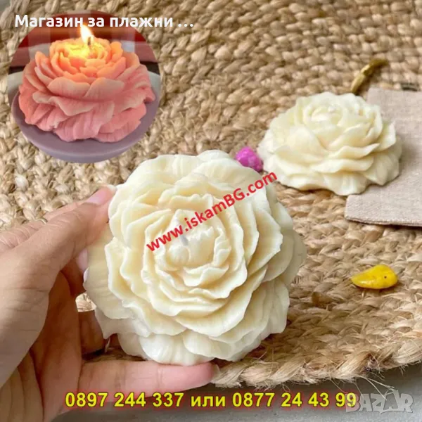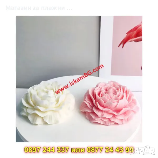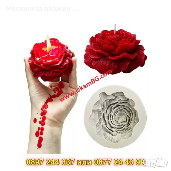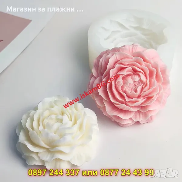 3D Силиконова форма Божур за свещи, фондан или гипсови отливки - КОД 4311