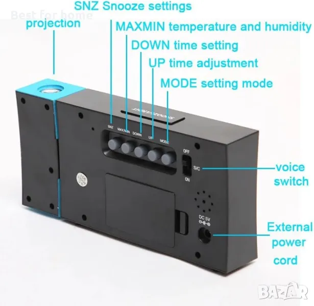 Регулируема яркост на екрана: този цифров будилник има аларма, 8 минути дрямка, подсветка и функция за прожектиране.