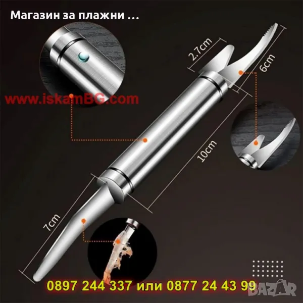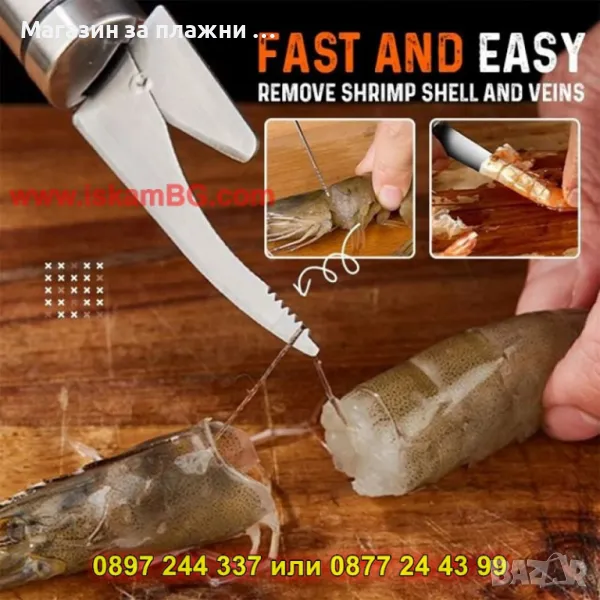 1 брой двустранен инструмент за чистене пресни скариди