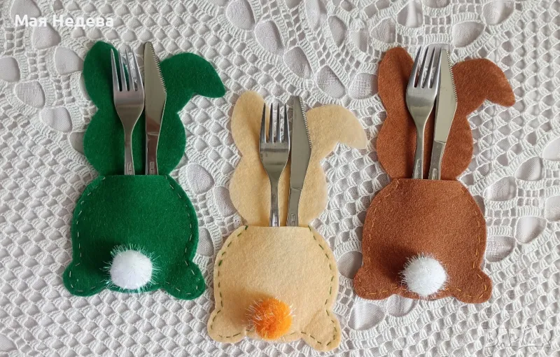 Великденска декорация Великденски заек Калъф / джоб за прибори Зайчета 3 броя → Обява 49165368