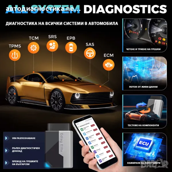 Малко, но мощно устройство за пълна автодагностика на всички системи в автомобила. С приложение за Android и iOS, инсталирано на телефон или таблет, а при Android и с превод на български език на диагностичната информация с просто натискане на бутон.