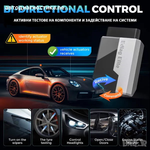 Професионални диагностични функции като component tests, bi-directional communication и coding.