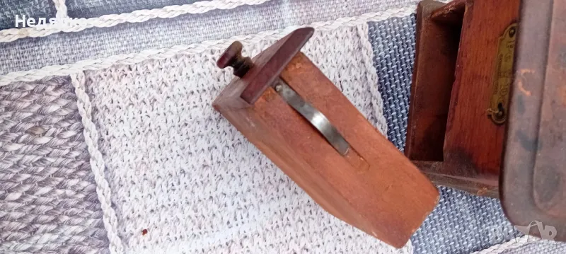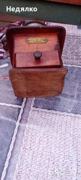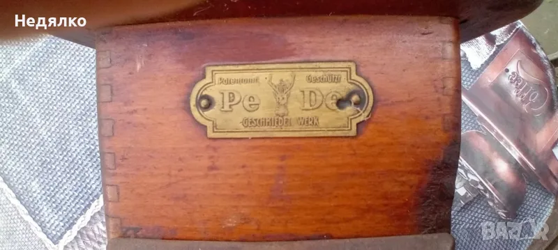 Автентична, в добро състояние, не е от късните модели,действаща,единствена липса,половината пружинна ламарина на шкафчето, махагон,желязна дръжка,корпус от хромиран бронз.Цена по каталог от 1927г- 2,50 RM.В този вид са изработвани от 1920 до 1930г.