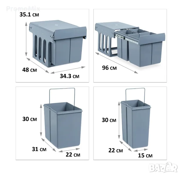 - 3 броя подвижни кофи
